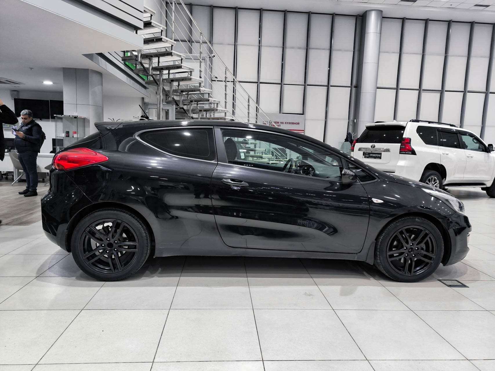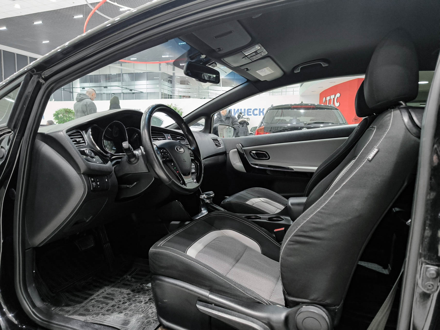 Kia Ceed II надёжный и практичный хэтчбек с трёхдверным кузовом и автоматом.Внешний вид — стильный чёрный цвет. Внутри — просторный тканевый салон с кожаными элементами, подогревом сидений и руля. Есть бортовой компьютер, мультимедиа с AUX/Bluetooth/USB, двухзонный климат-контроль, круиз-контроль, электростеклоподъёмники и регулировка руля. Обеспечена безопасность — ABS, шторки, подушки, крепление для детского кресла. Дополнительные опции — противотуманные фары, датчики дождя и света, обогрев зон стеклоочистителей и зеркал, электрозеркала.