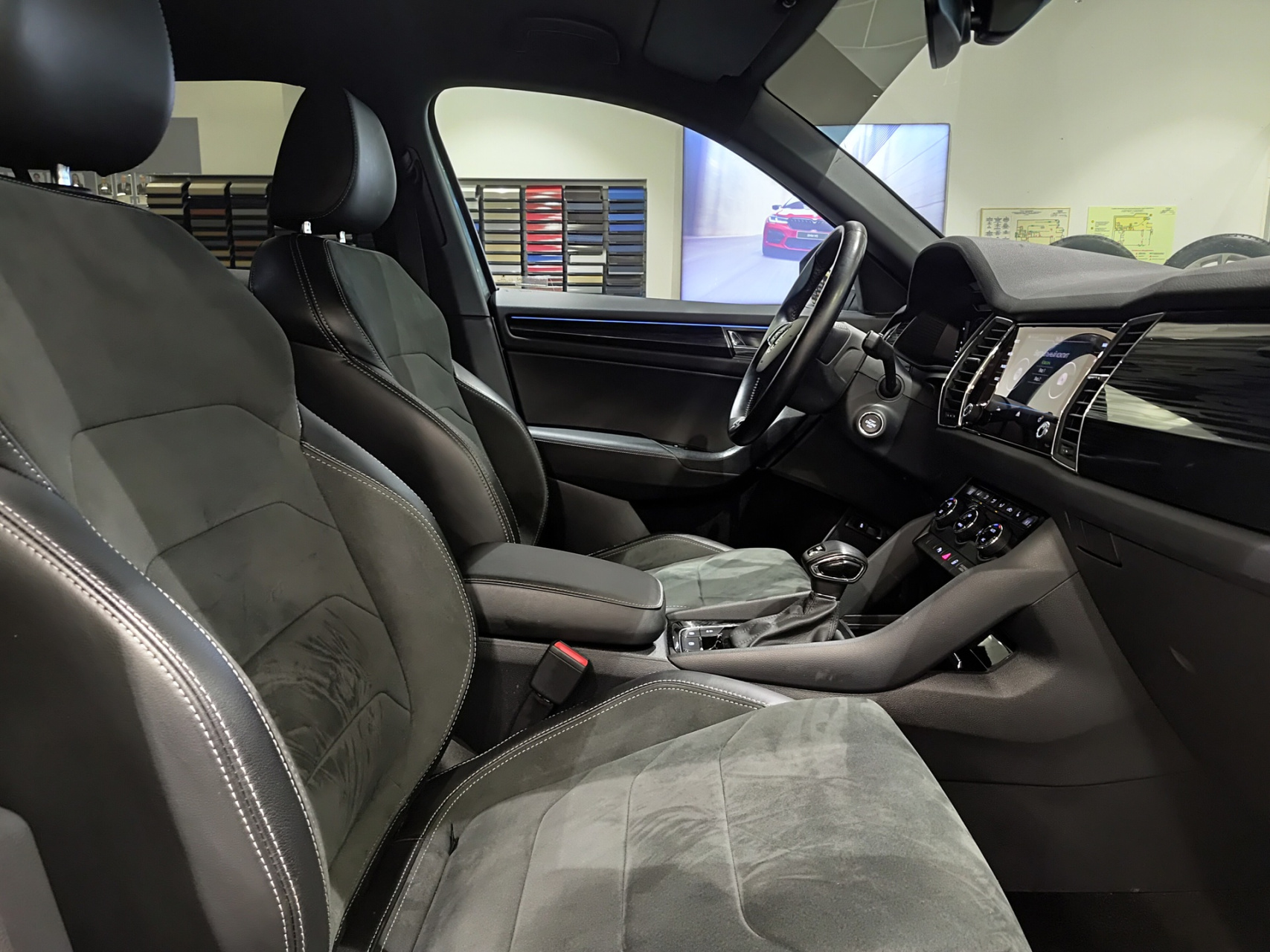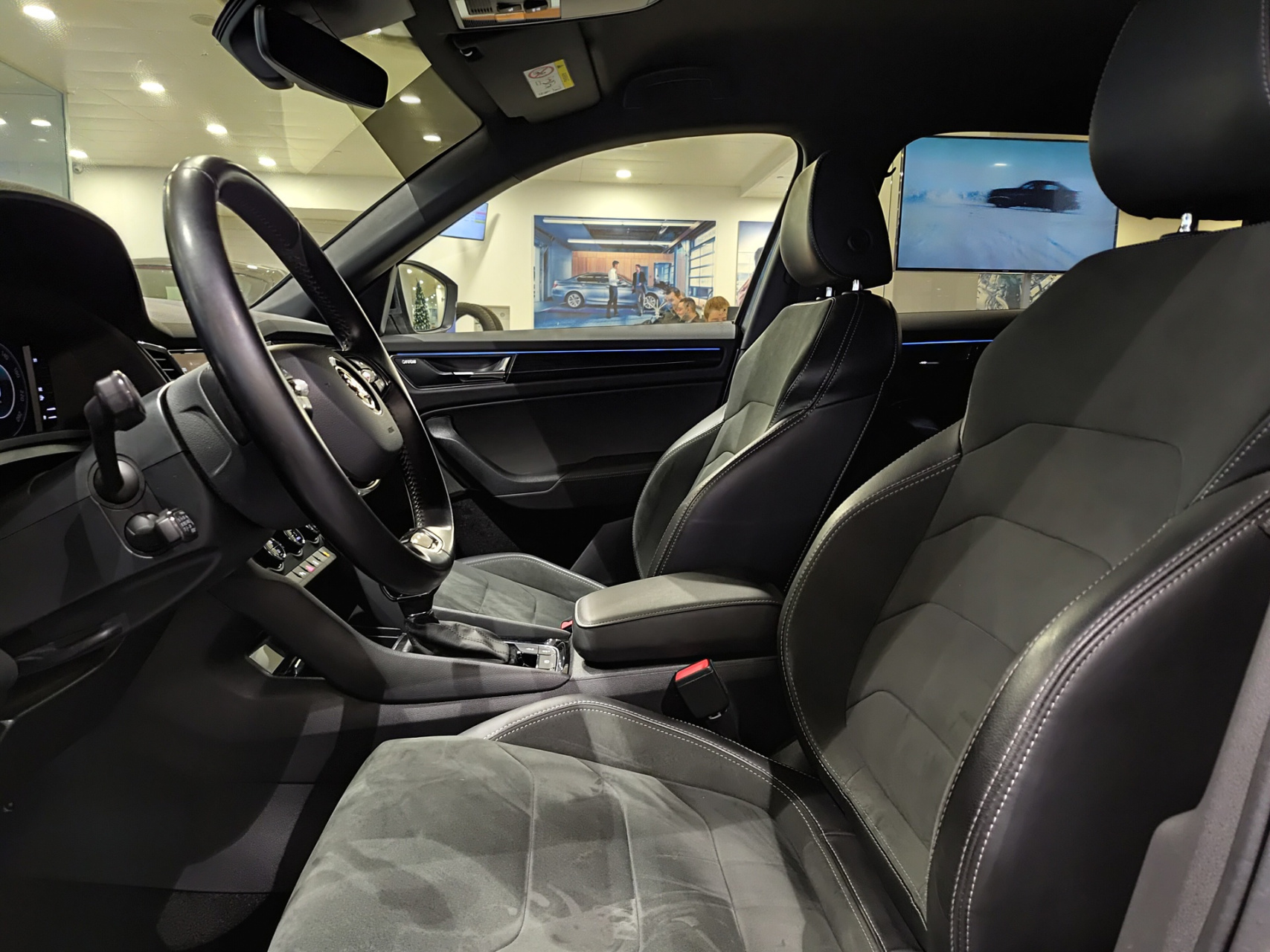 стильный комбинированный салон с алькантарой;