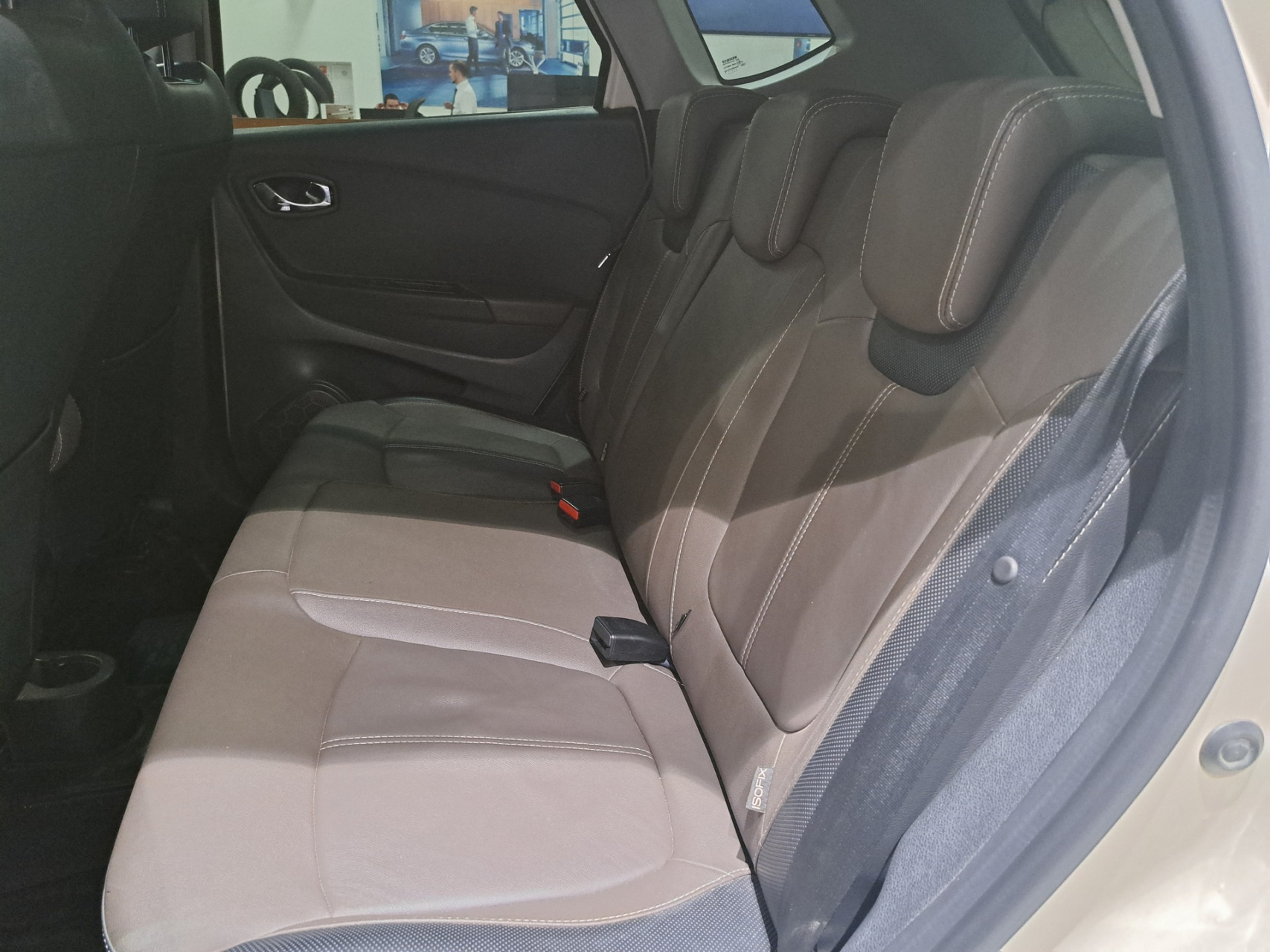 Салон оформлен с акцентом на комфорт и элегантность. Сиденья выполнены в двухцветной кожаной отделке: комбинация дымчато-коричневой кожи с декоративными чёрными вставками создаёт стильный образ. Кресла удобные, с хорошим профилем, который позволяет быстро найти оптимальное положение и обеспечивает отличную обзорность.